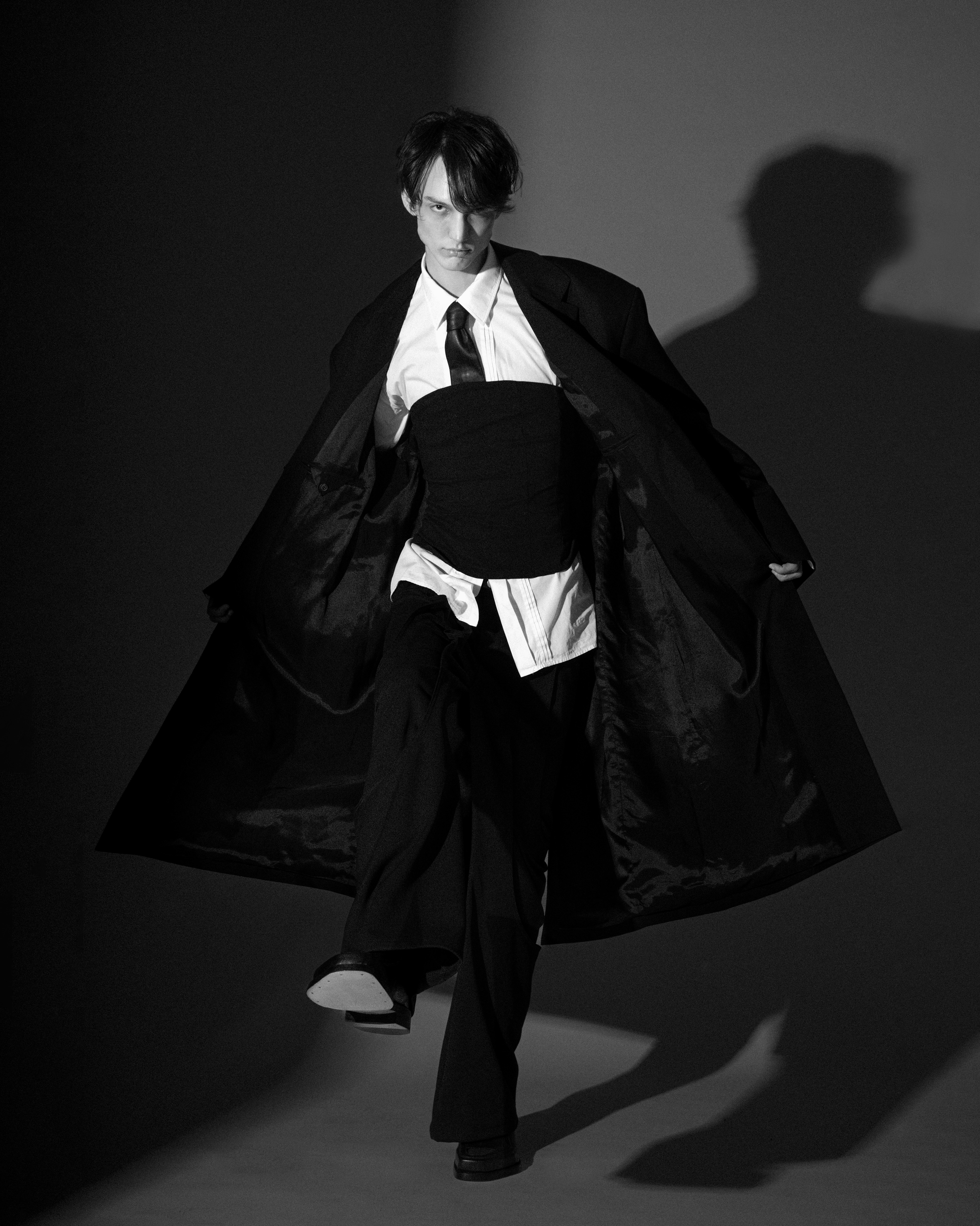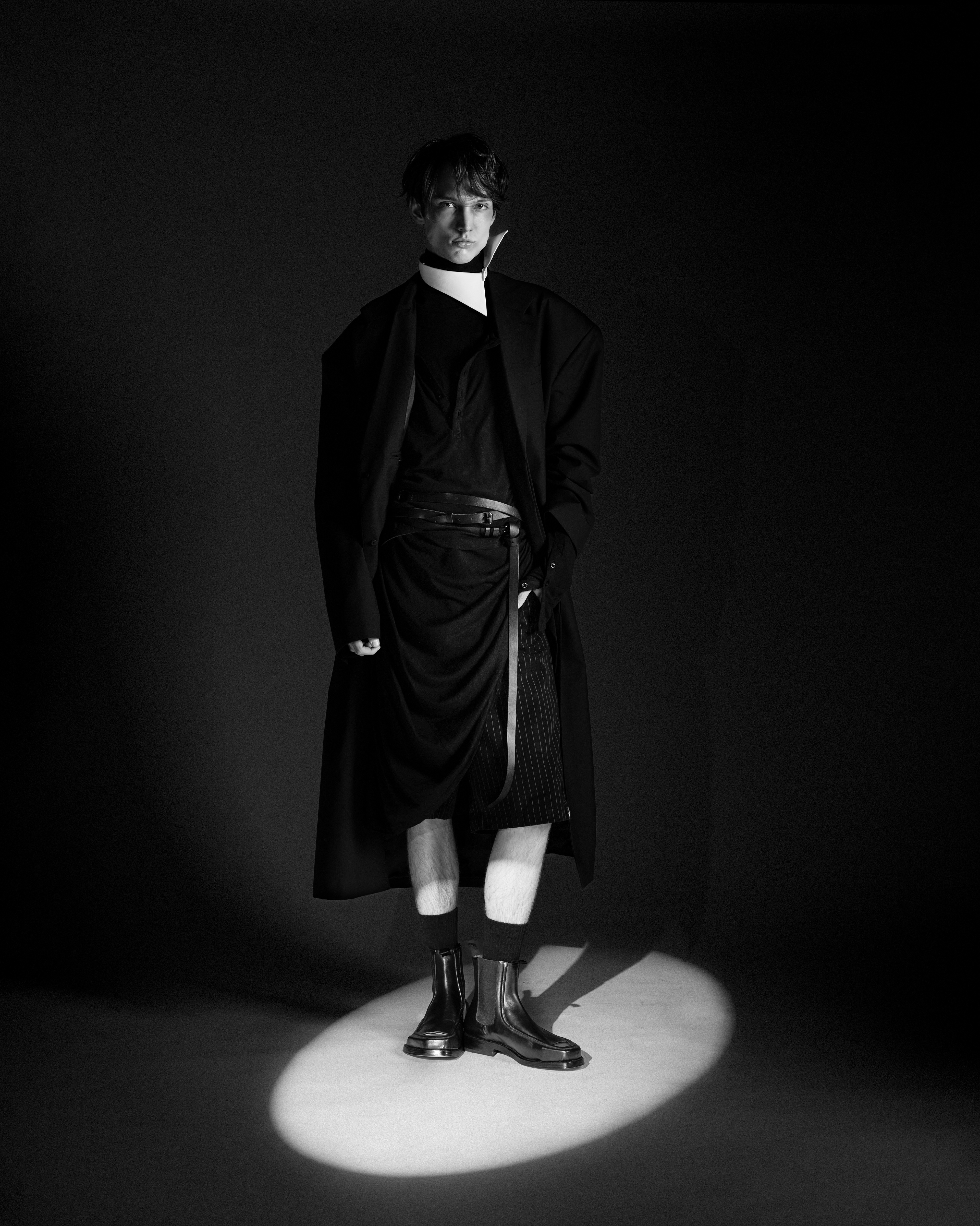 A KALTBLUT exclusive by Leonardo Pomposi and team, a fashion stylist and art director based between Florence and Milan. Photography by Matteo Castagnoli. The model is Jonatan Borbely. Make up by Silvia Gerzeli. Photography Assistant by Martina Ceccato. Fashion by Ann Demeulemeester, 032c, Unvain, Maison Margiela and Magliano.